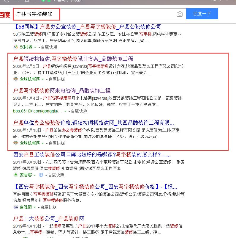 我們可以看看有一些成功案例:只做中式風格裝修,只做辦公室裝修,只做酒店裝修,這類型的網站相關的長尾關鍵詞排名也都非常靠前,或的潛在客戶也很多,反之那些做得比較雜比較多的網站,除了一些有實力大力推廣的平臺網站,幾乎沒有什么訂單。
