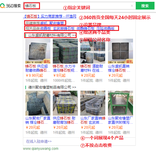 從另一個(gè)角度理解,可以將其認(rèn)知為360首頁的固定包年廣告位,按詞售賣且無輪展。